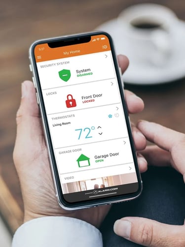 Absolutely. With the Alarm.com app, you can arm/disarm your system, check live video feeds, control smart home devices, and receive instant alerts on your smartphone anytime, anywhere.
